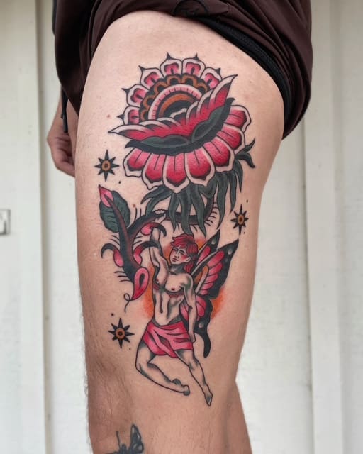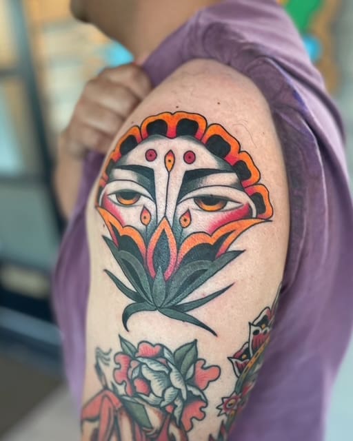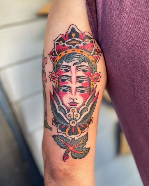 San Diego’s Shawn Paradis brings high-impact Traditional to Portland. Color or black & gray that reads from across the room and heals strong. We’re talking about pin-ups and girl heads, flora & fauna, mythic/fantasy bangers, and folk-ornamental compositions, with space and western themes in the mix. Sessions are queer-affirming, trauma-informed, and dialed for clarity and punch.
