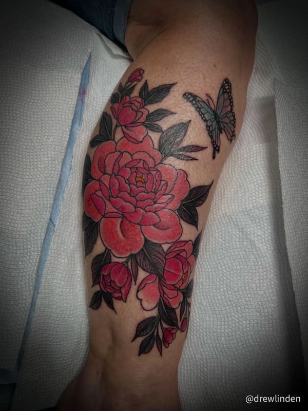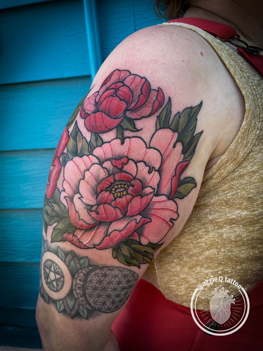 Peonies, also known as the King of Flowers, are major cultural icons around the world, and in tattoo culture they have become one of the most popular and sought-after floral designs. The peony typically symbolizes wealth, prosperity, and good fortune, but may also stand as a symbol of fragility and transition. In Japanese tattoo culture, peonies are often paired with strong elements like dragons and lions to represent the balance of power and beauty.